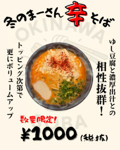 夏にご好評いただいた「まーさん辛そば」が、 冬バージョンへとパワーアップして帰ってきました!